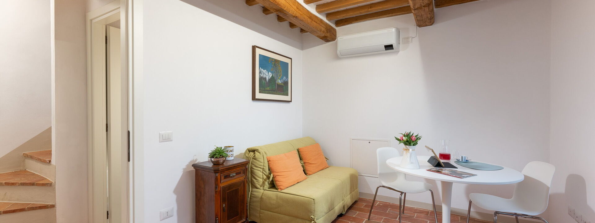 Attaccato al fabbricato principale, un piccolo loft su due piani, composto da zona giorno con angolo cottura, perfetto per due persone, con piccolo tavolo da pranzo e loggia coperta, dalla quale si può godere di un bellissimo panorama.