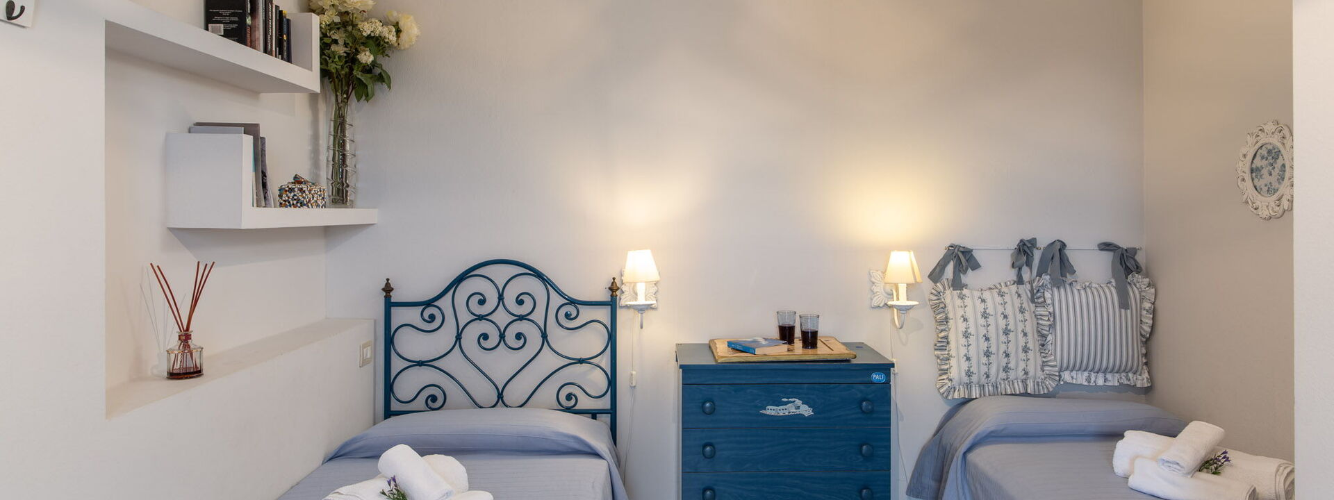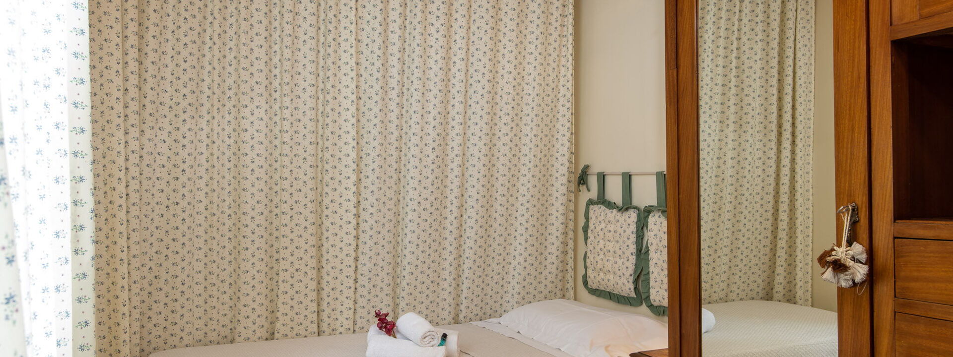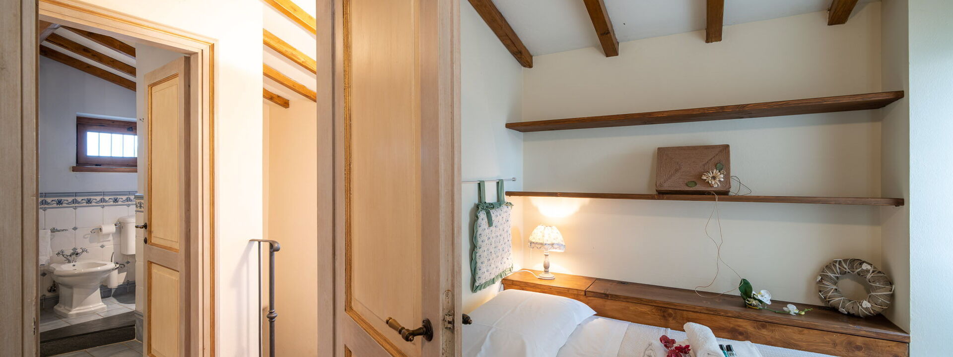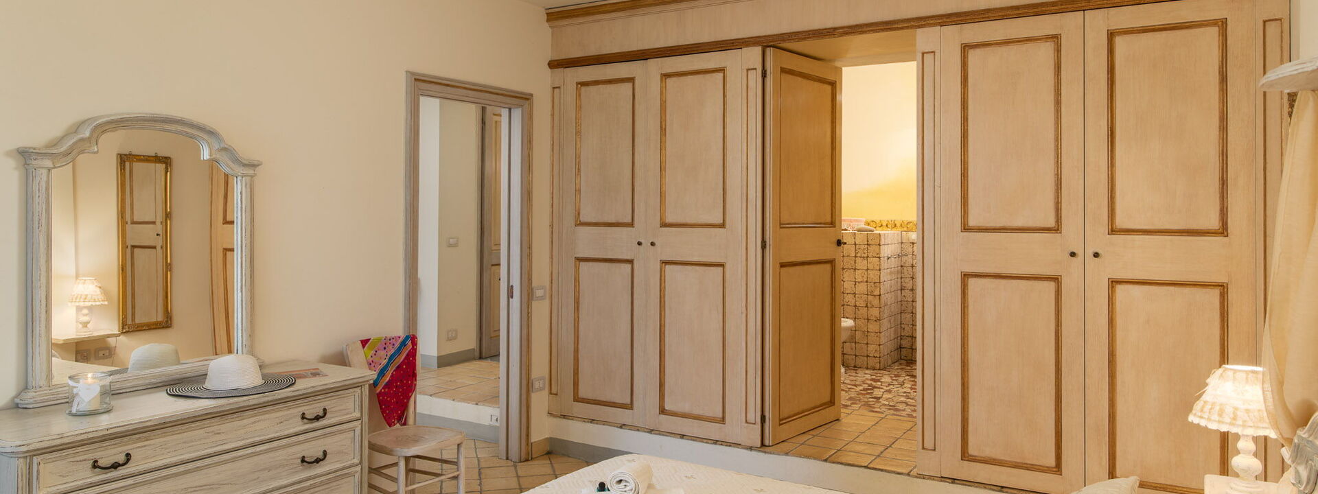 Due camere da letto: Una matrimoniale con bagno privato (doppio lavabo e doccia) e accesso al giardino; una versatile camera doppia (i letti possono essere uniti su richiesta).