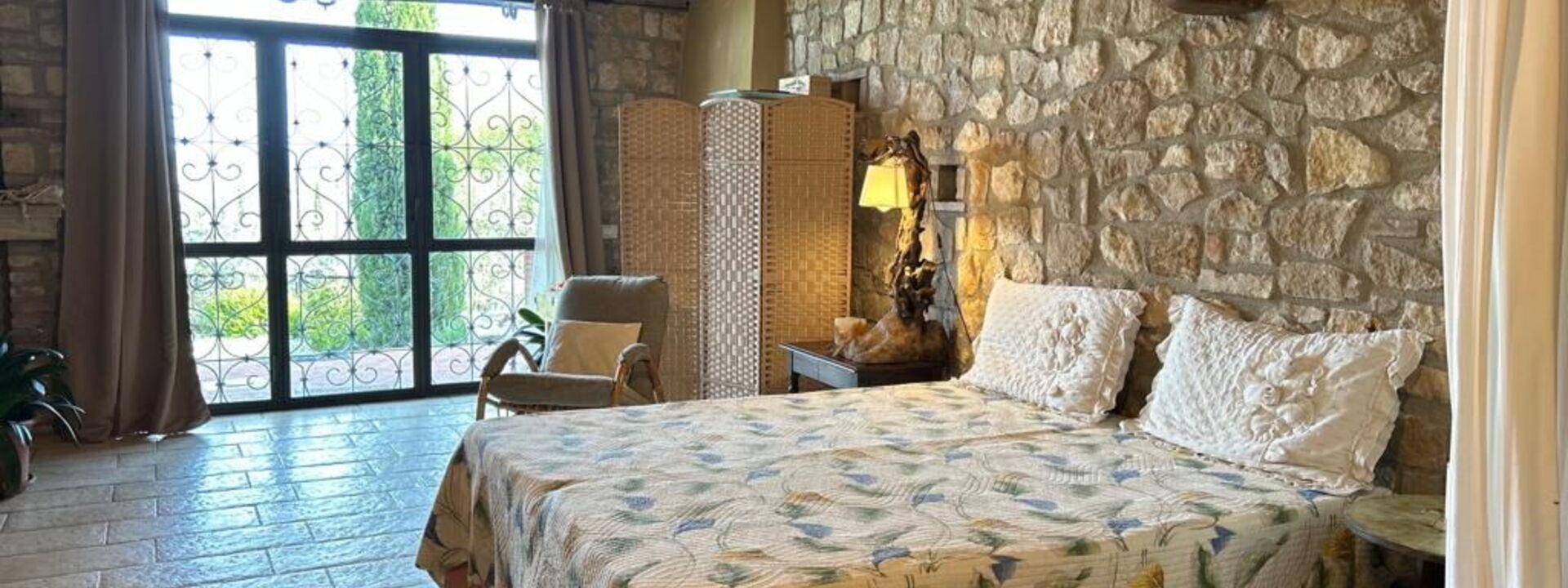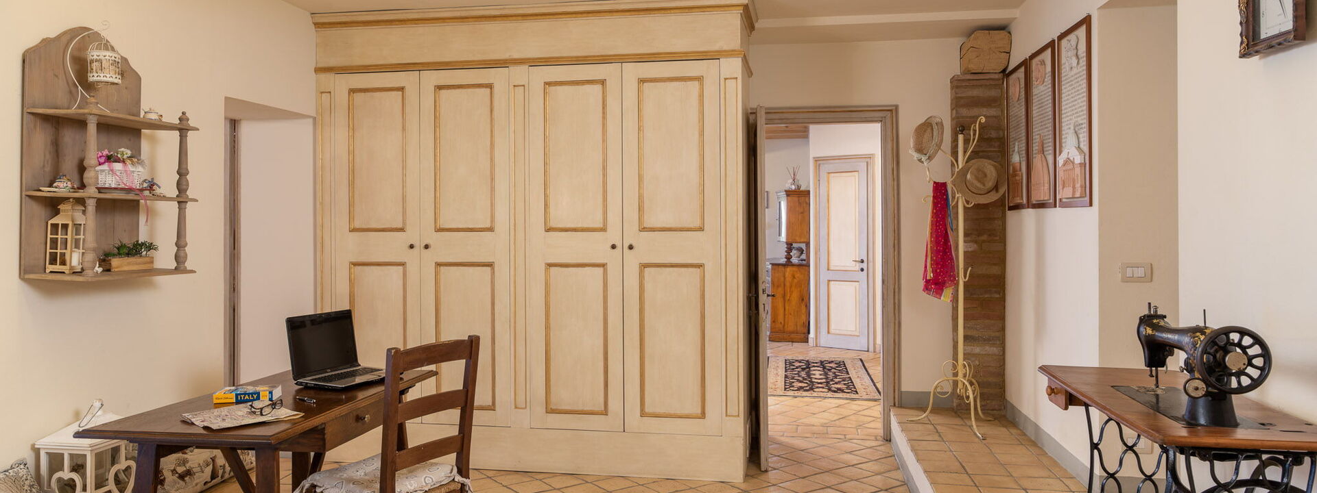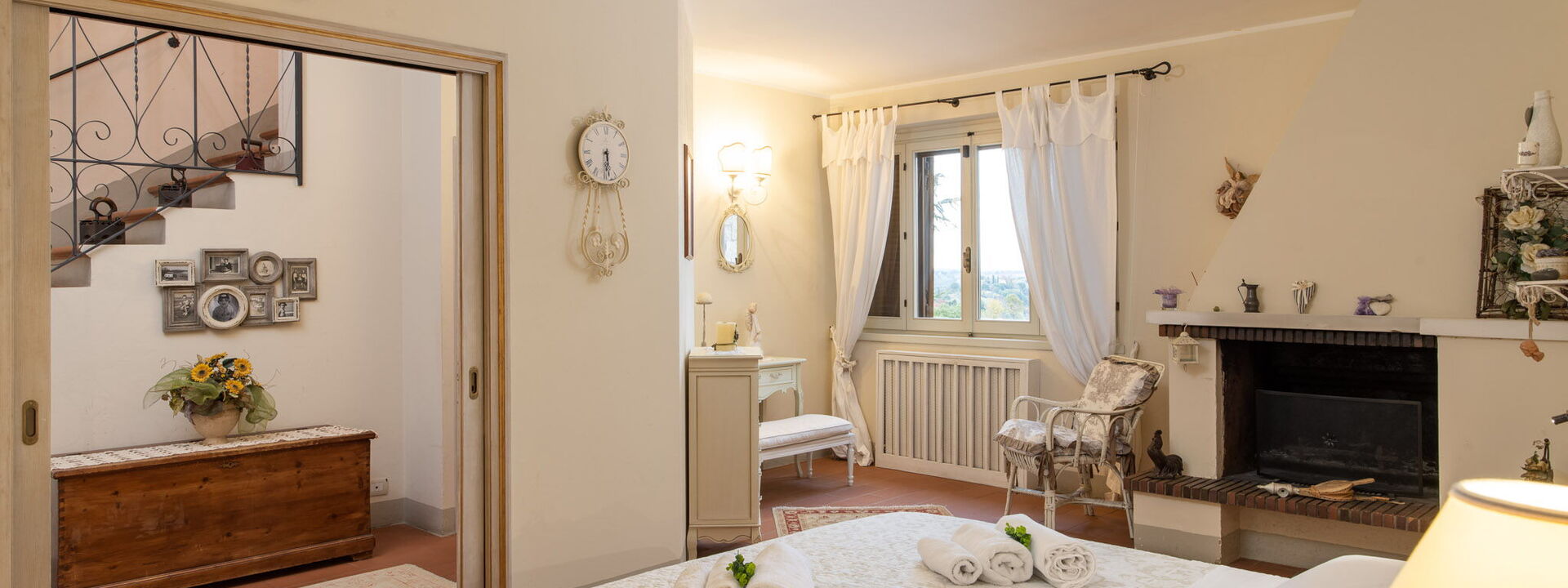 Un ritiro privato che offre alcuni degli scorci più spettacolari della villa: una seconda grand suite con letto King-size e balcone privato, e un'accogliente camera con due letti singoli che vanta una vista da cartolina su San Gimignano. Il piano è servito da un bagno completo dotato di una doccia moderna.