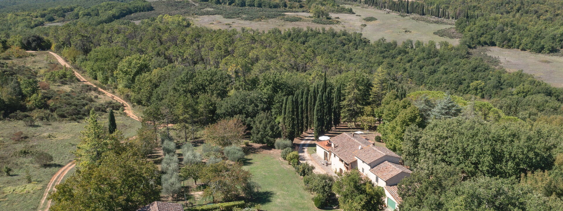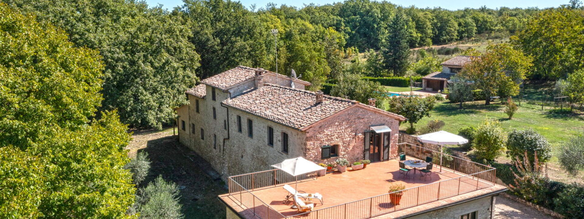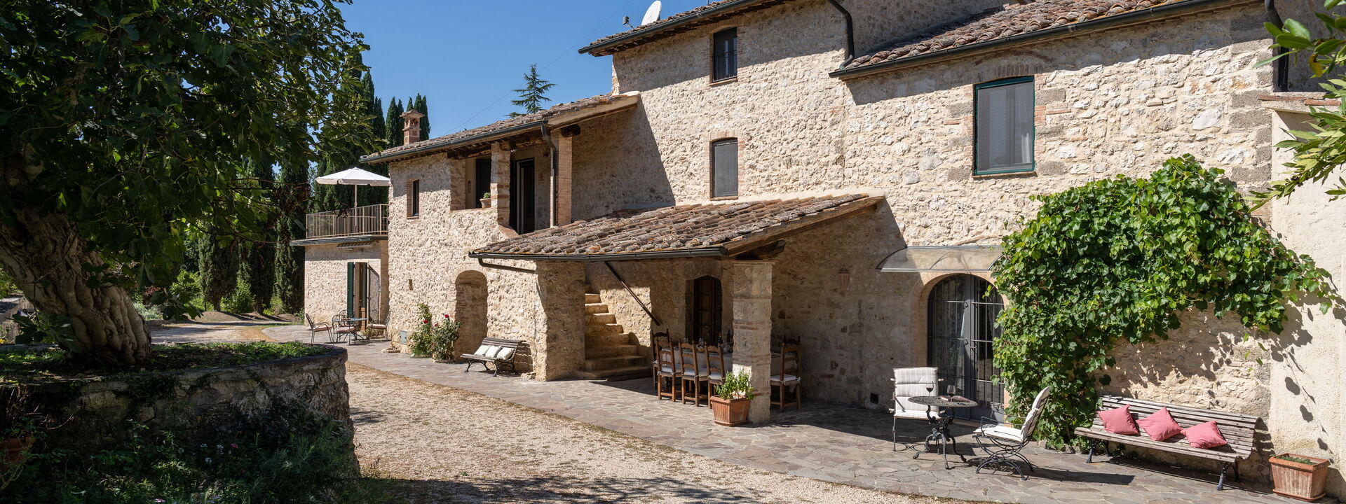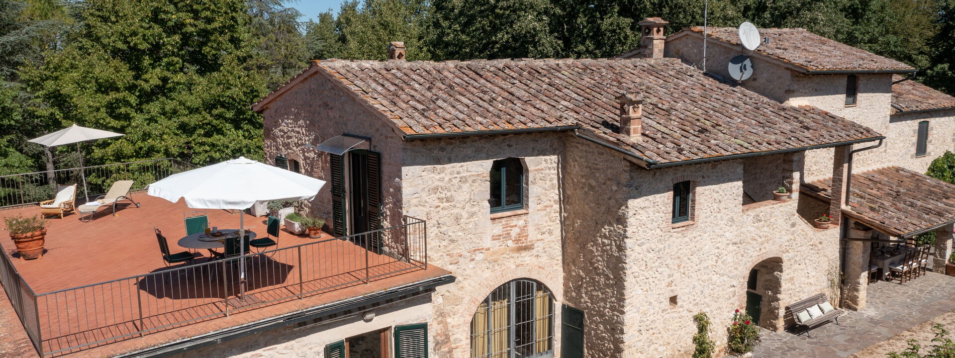 Immersa nei boschi nei pressi di Colle di Val d’Elsa, la villa sorge direttamente sull'antico cammino di pellegrinaggio che collega Canterbury a Roma. I sentieri escursionistici iniziano proprio fuori dal cancello, mentre San Gimignano, Siena e Firenze restano mete facilmente raggiungibili per gite in giornata.