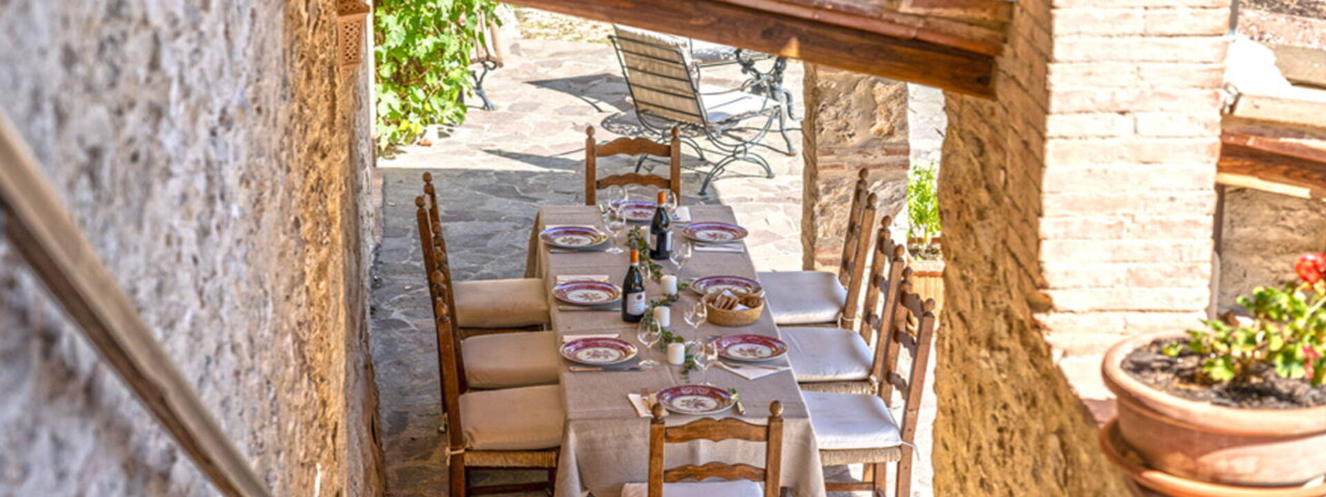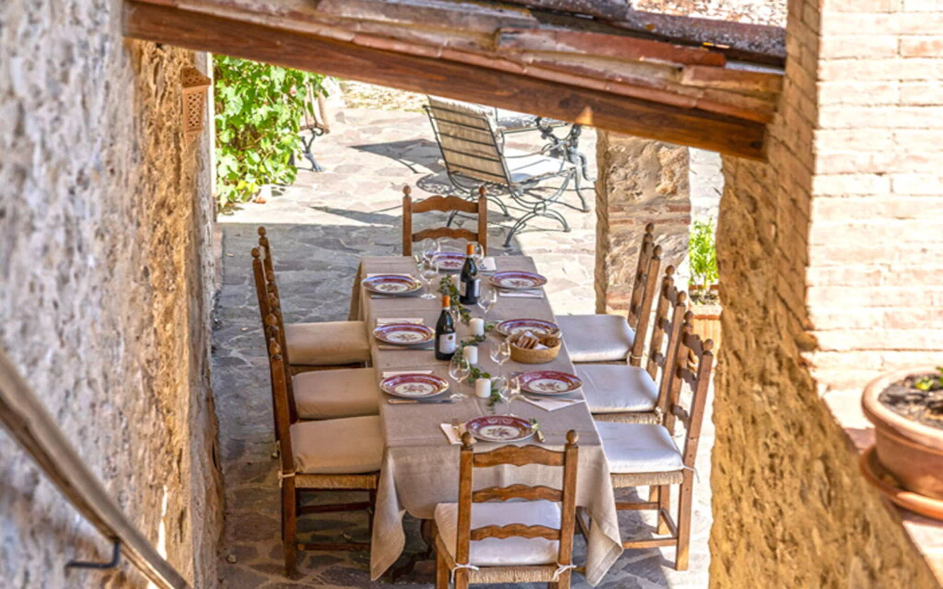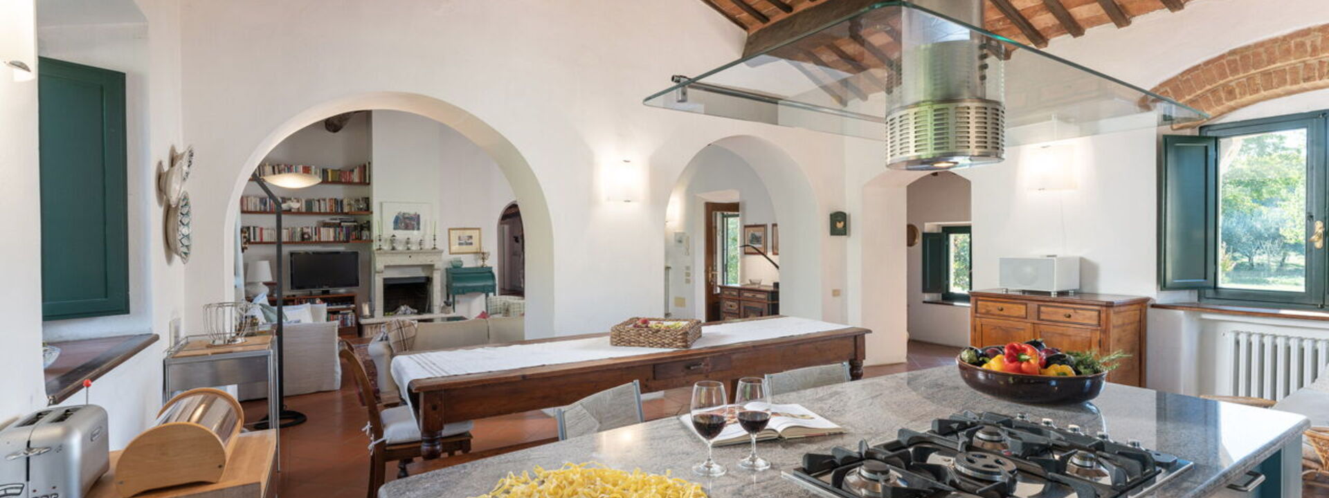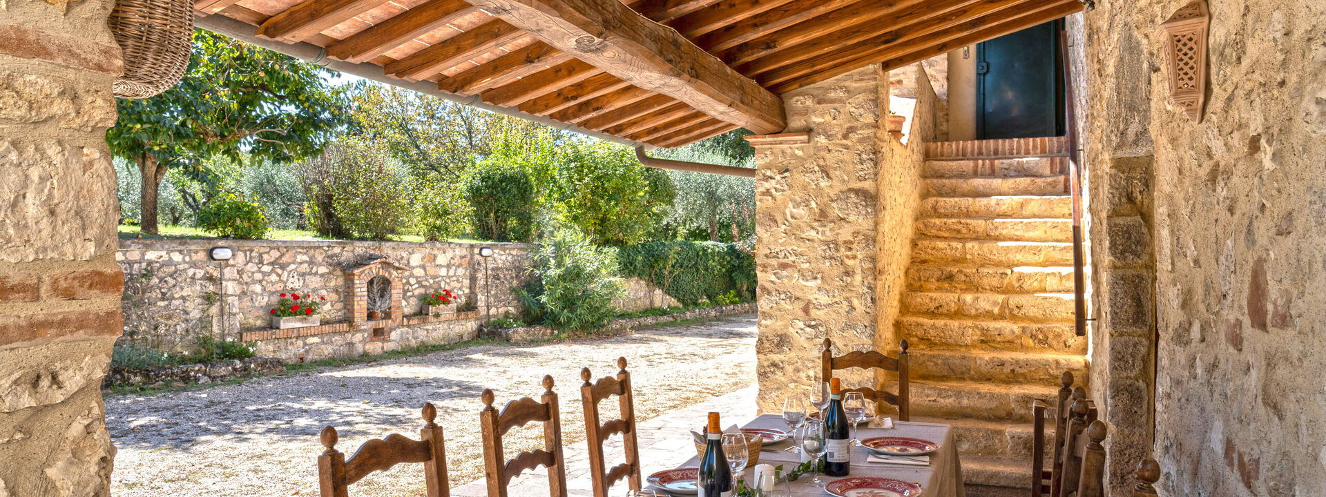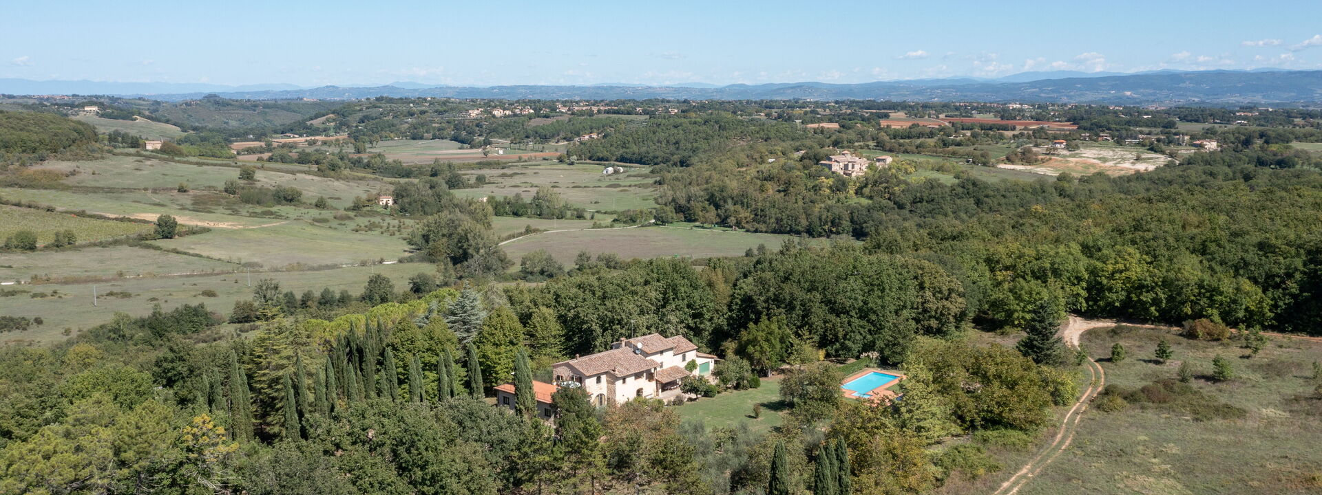 Immersa nei boschi nei pressi di Colle di Val d’Elsa, la villa sorge direttamente sull'antico cammino di pellegrinaggio che collega Canterbury a Roma. I sentieri escursionistici iniziano proprio fuori dal cancello, mentre San Gimignano, Siena e Firenze restano mete facilmente raggiungibili per gite in giornata.