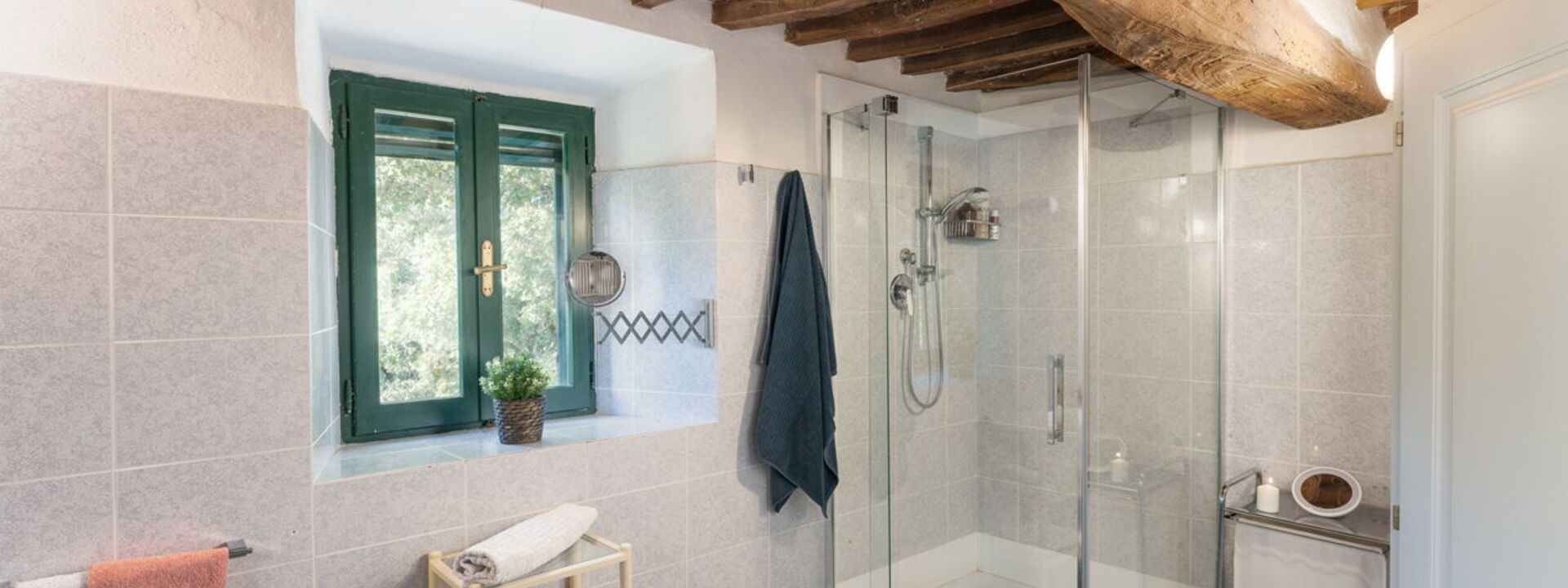 Non c'è aria condizionata nella villa, ma le spesse mura in pietra mantengono gli interni freschi, supportati da ventilatori in tutte le camere da letto.