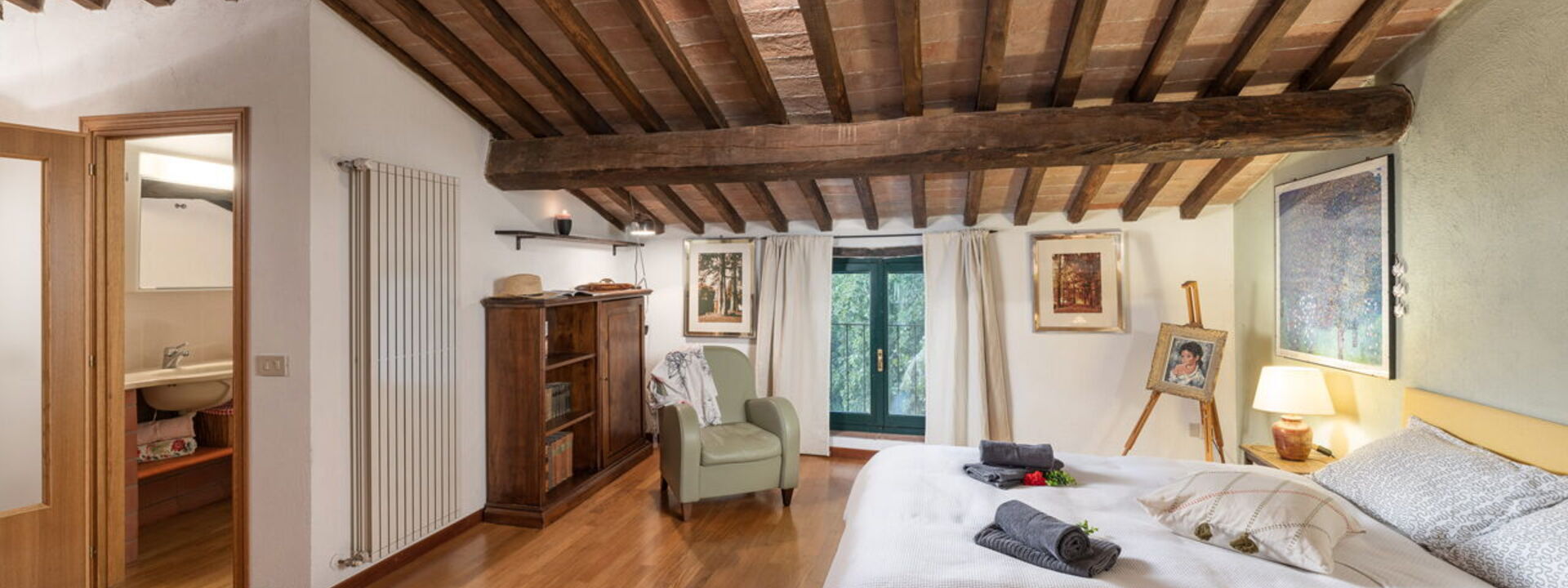 Una camera al piano superiore con letto alla francese, con bagno di servizio privato in camera