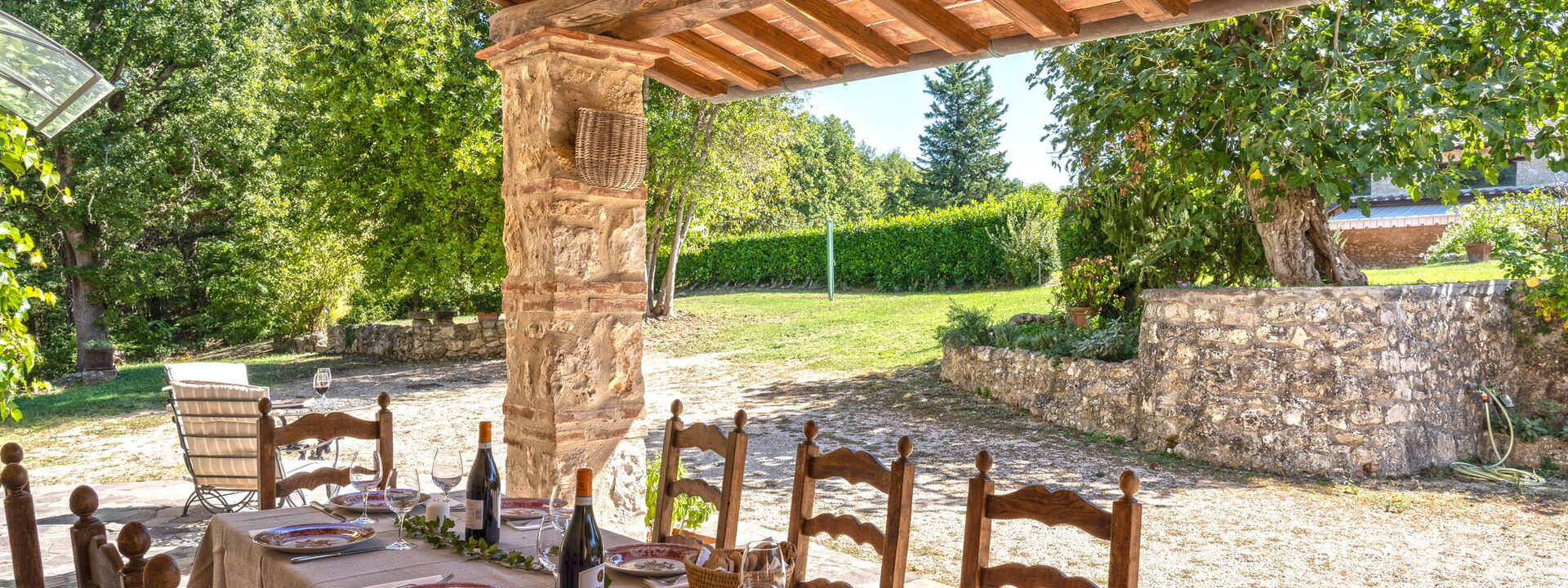 Spazi esterni: Veranda, zone d’ombra e ampi spazi per pranzi lunghi e rilassati.