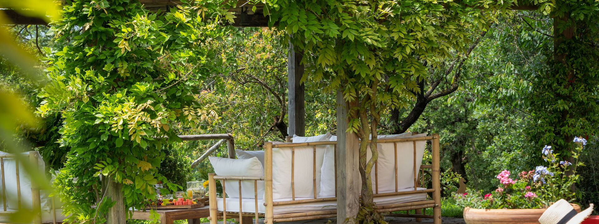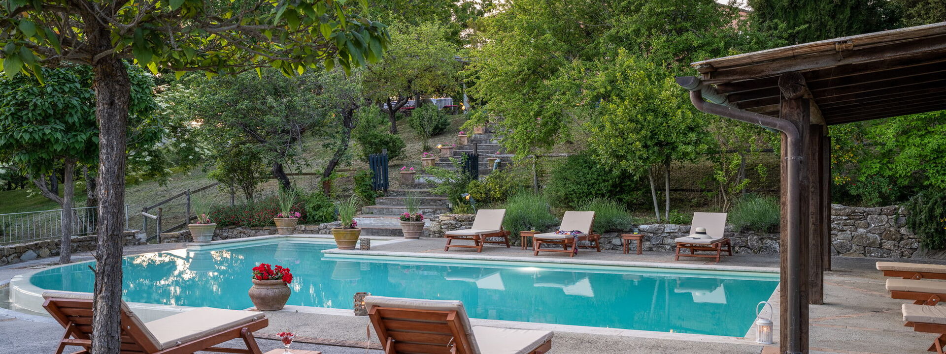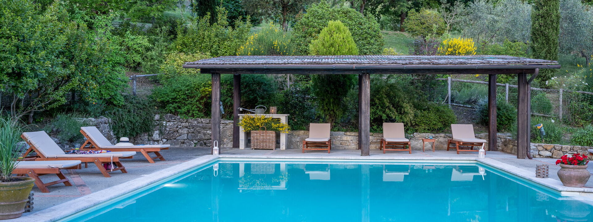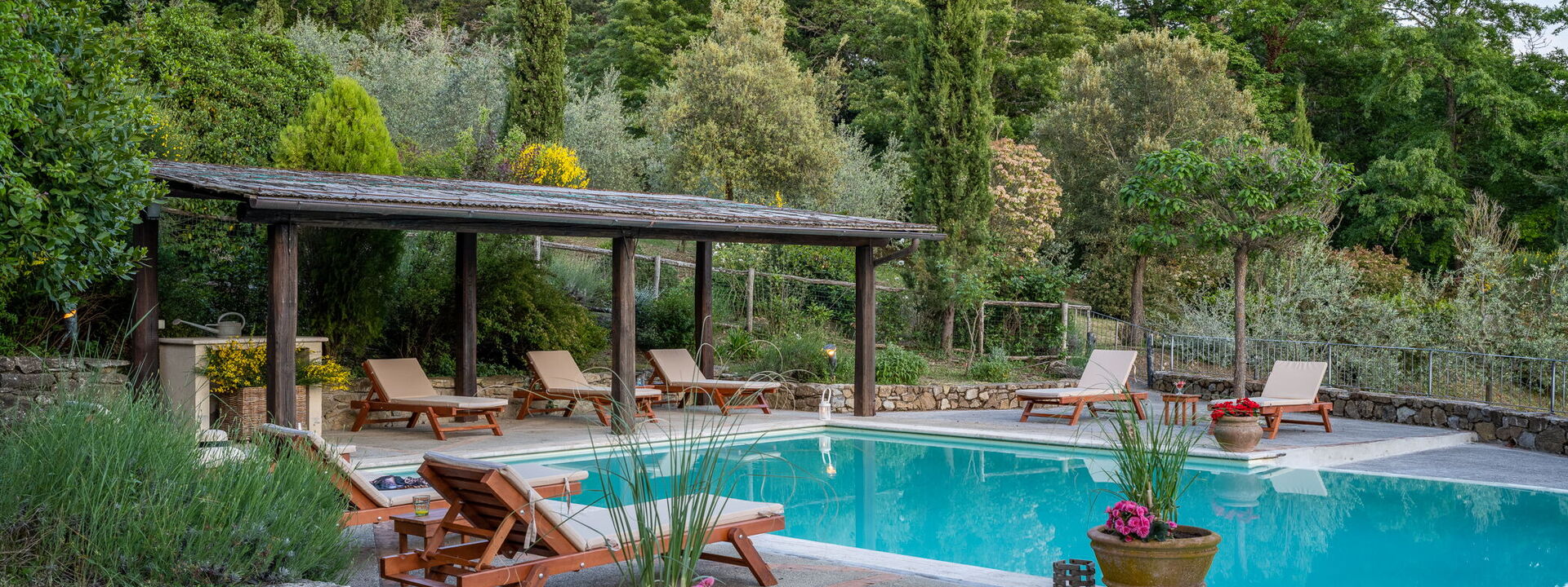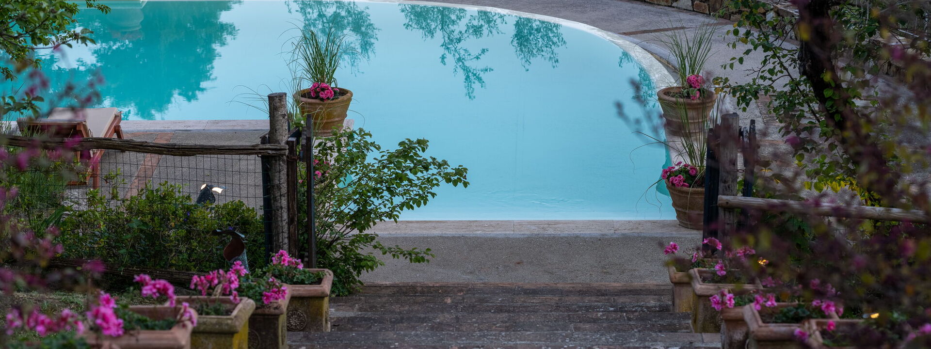 Il giardino di rose, lavande e rosmarino fa da cornice alla piscina a sfioro (riscaldata su richiesta da maggio a ottobre) e piccoli pergolati naturali attrezzati con sedie e tavoli, in grado di regalarvi momenti di relax in assoluto silenzio, interrotti solo dal canto degli uccelli.
