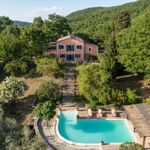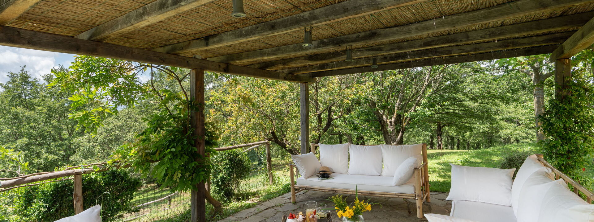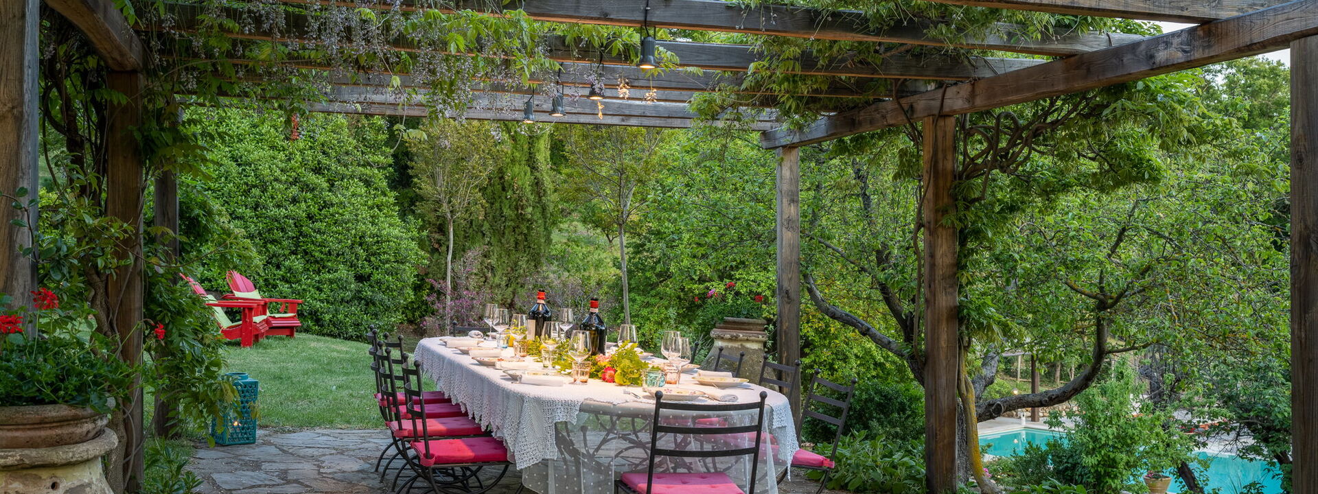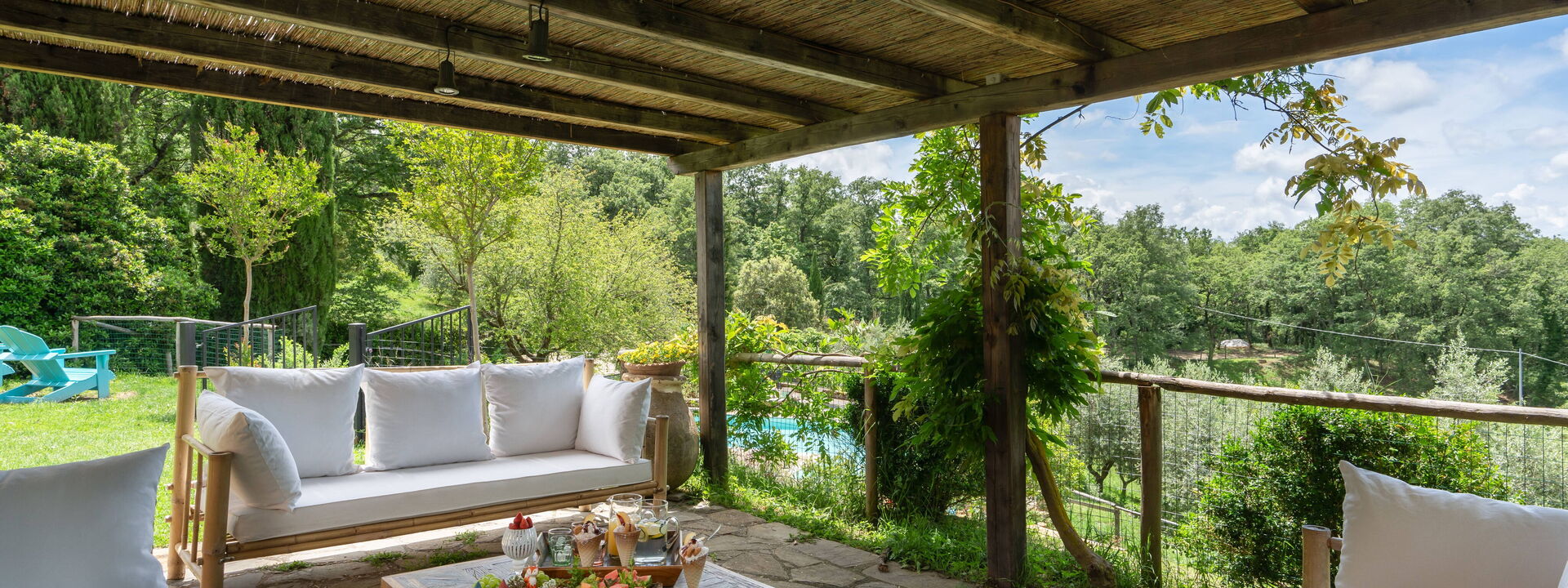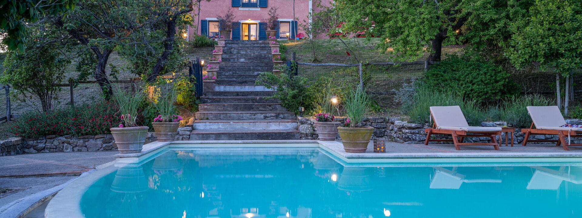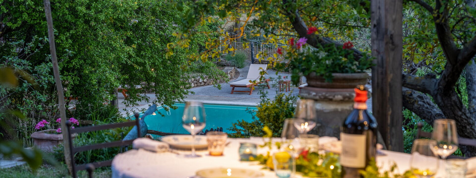 Il giardino di rose, lavande e rosmarino fa da cornice alla piscina a sfioro (riscaldata su richiesta da maggio a ottobre) e piccoli pergolati naturali attrezzati con sedie e tavoli, in grado di regalarvi momenti di relax in assoluto silenzio, interrotti solo dal canto degli uccelli.