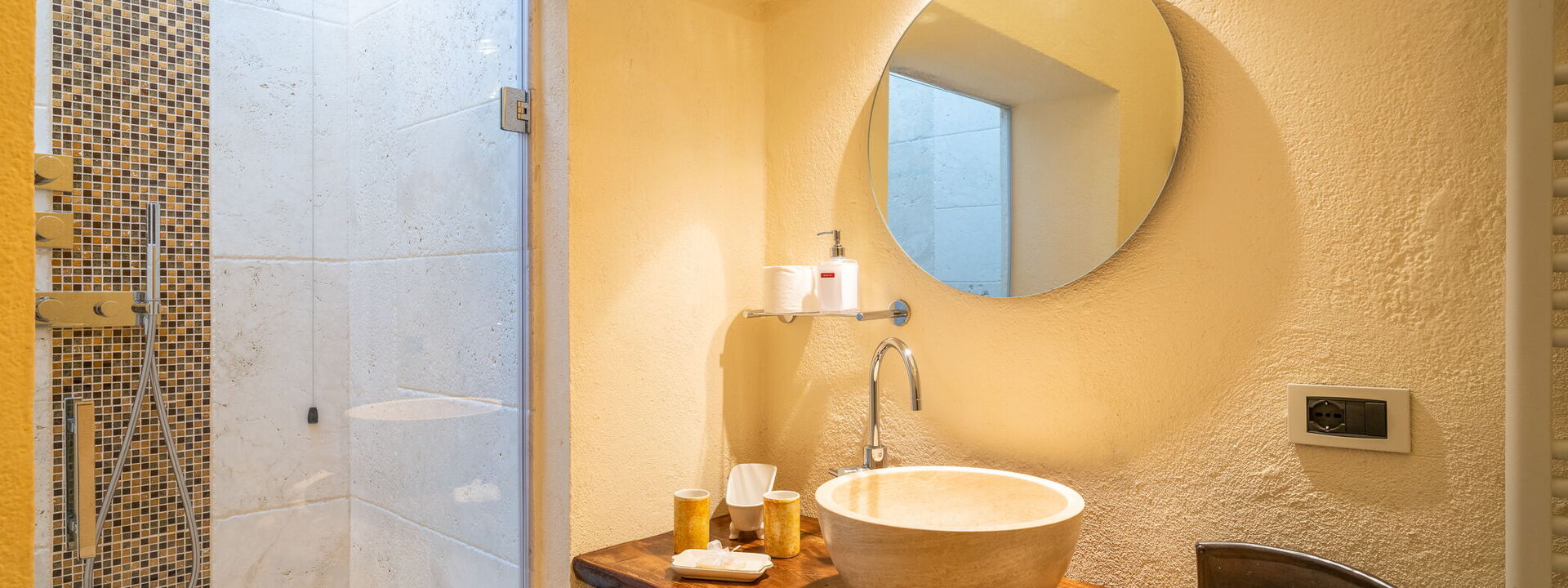 2 camere matrimoniali con bagno privato (una con doccia e 1 con lavabo).