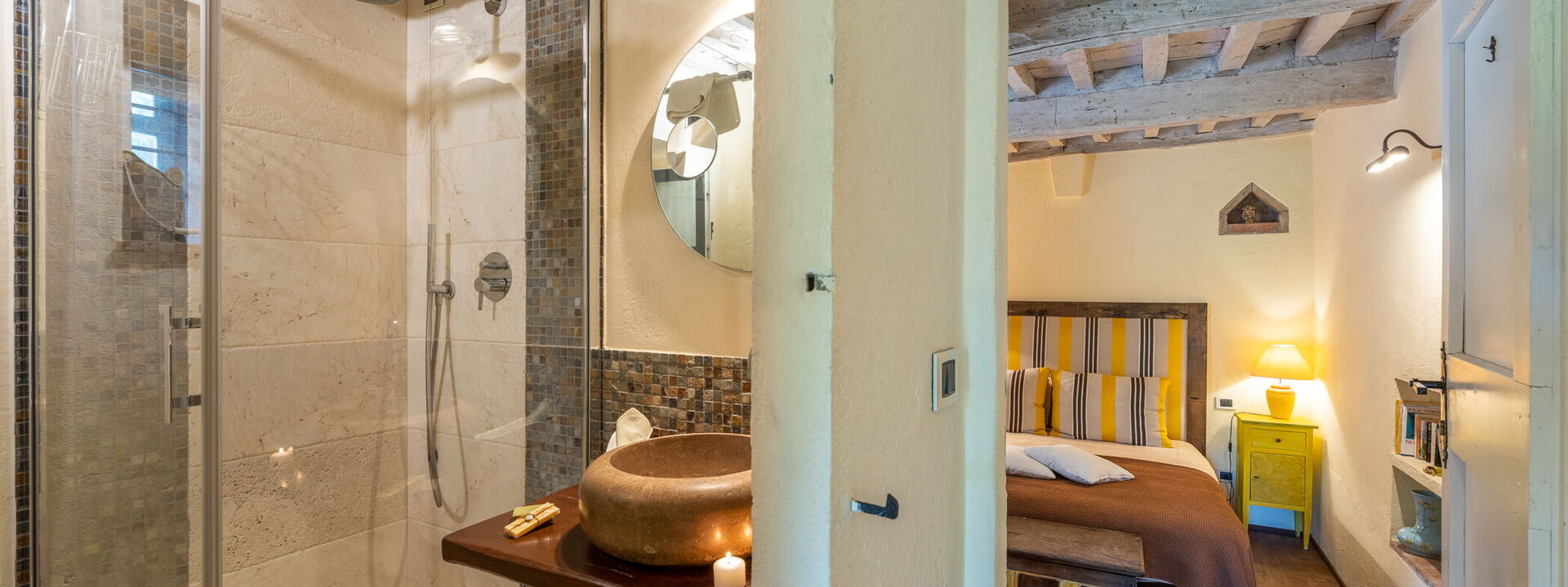 Le 5 camere doppie sono tutte con bagno privato (5 bagni con doccia e 1 con vasca) e sono dislocate su due piani e, sebbene tutte diverse, tutte arredate con mobili di alta qualità.