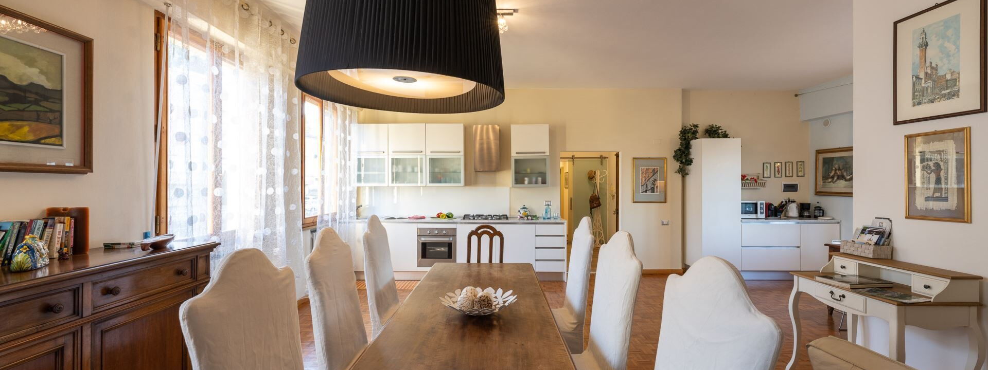 Situata in una tranquilla zona residenziale appena fuori dal centro storico, questa proprietà offre il perfetto equilibrio tra comodità e comfort. Gli ospiti possono raggiungere Piazza del Campo in circa 20 minuti a piedi o in soli 5 minuti d'auto; allo stesso tempo, le principali vie per il Chianti, Firenze, San Gimignano e la Val d’Orcia sono distanti solo pochi minuti.