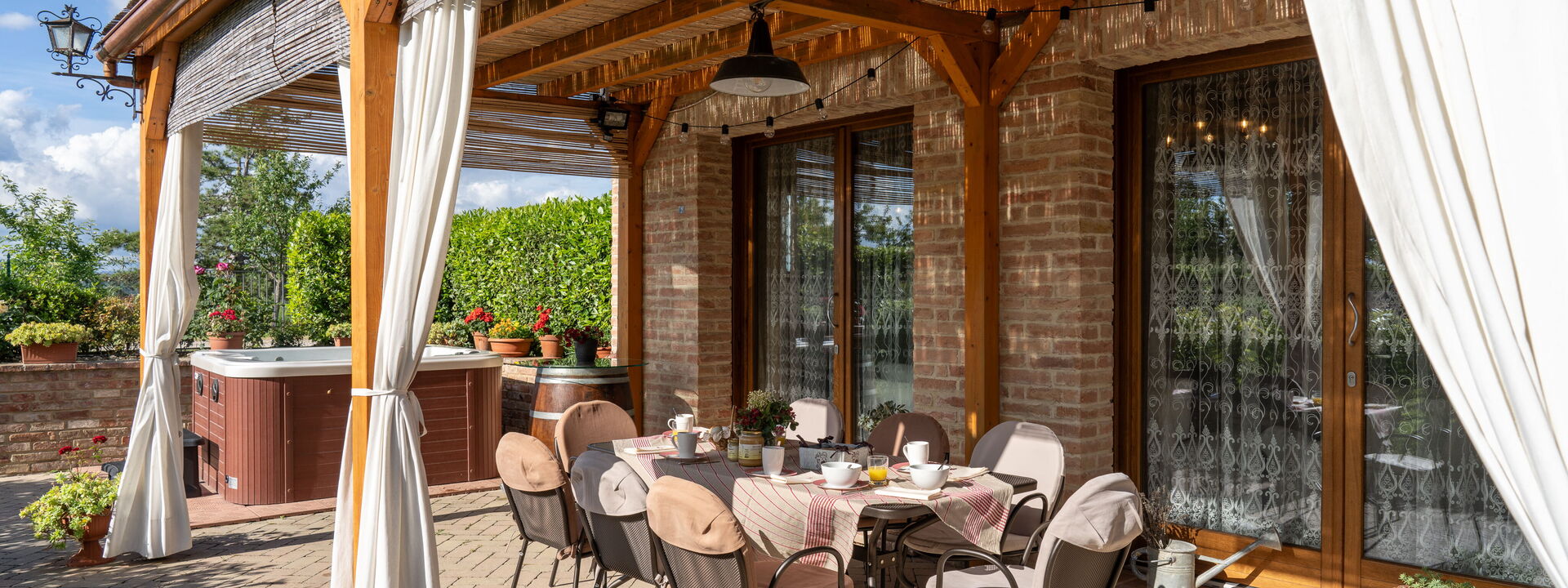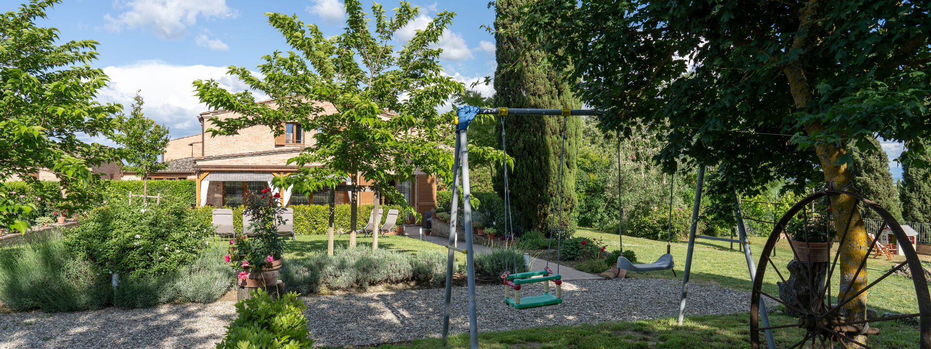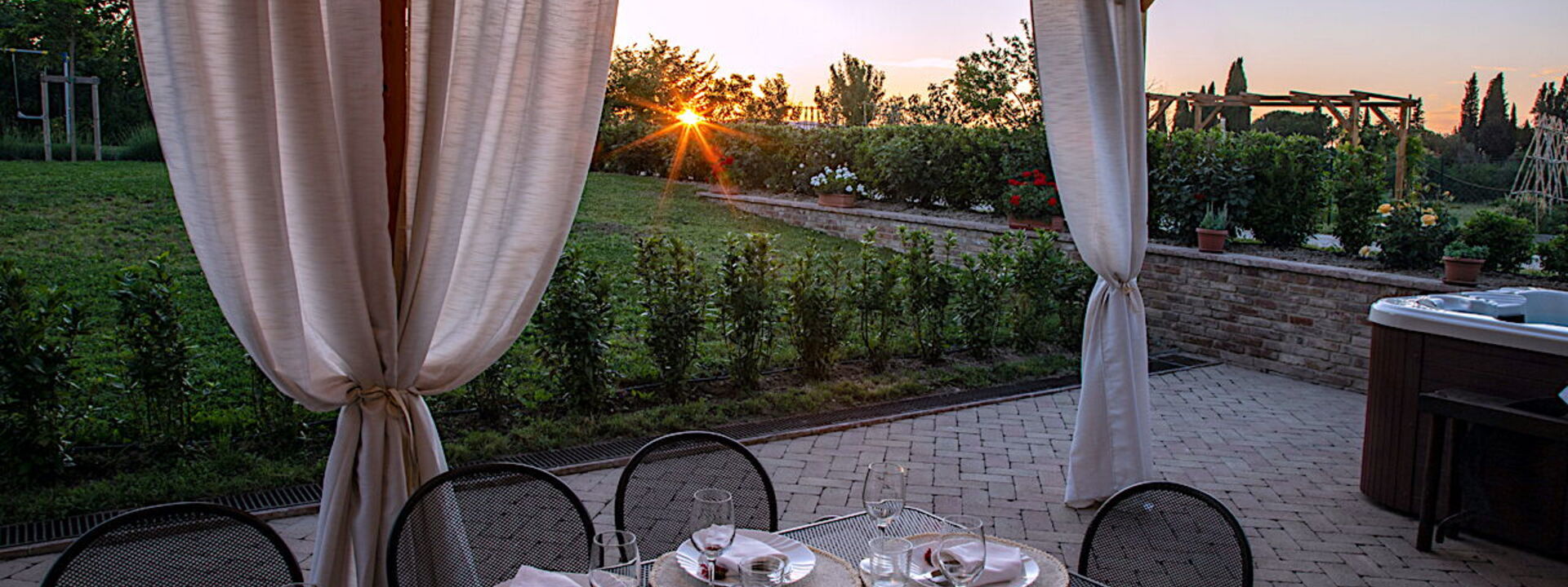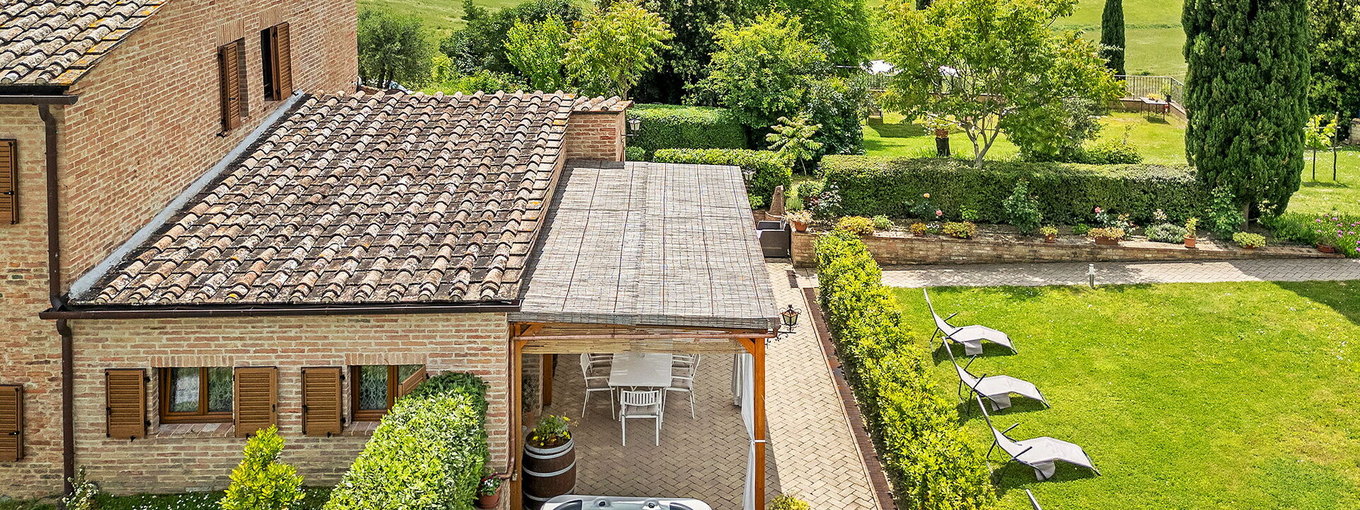 All'esterno, gli ospiti possono godersi il giardino privato e la pergola coperta, il luogo perfetto per cene all'aperto e per rilassarsi all'aria fresca della campagna.