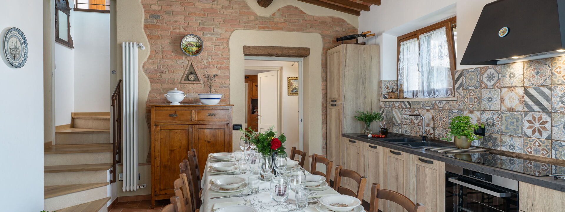 Il piano terra dispone inoltre di un ampio e luminoso soggiorno, una grande cucina tipica toscana con un lungo tavolo da pranzo, ideale per condividere i pasti in compagnia, una cucina modernamente attrezzata con piano a induzione, forno, frigorifero, congelatore, microonde, macchina del caffè Lavazza A Modo Mio, bollitore, tostapane e set completo di stoviglie un vano lavanderia con lavatrice.