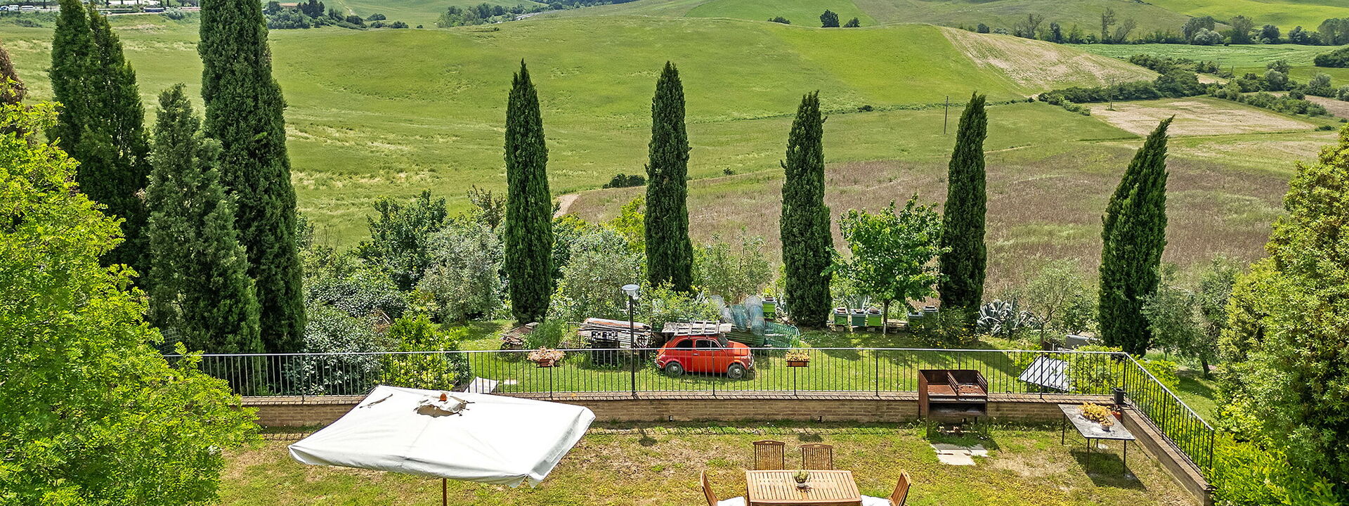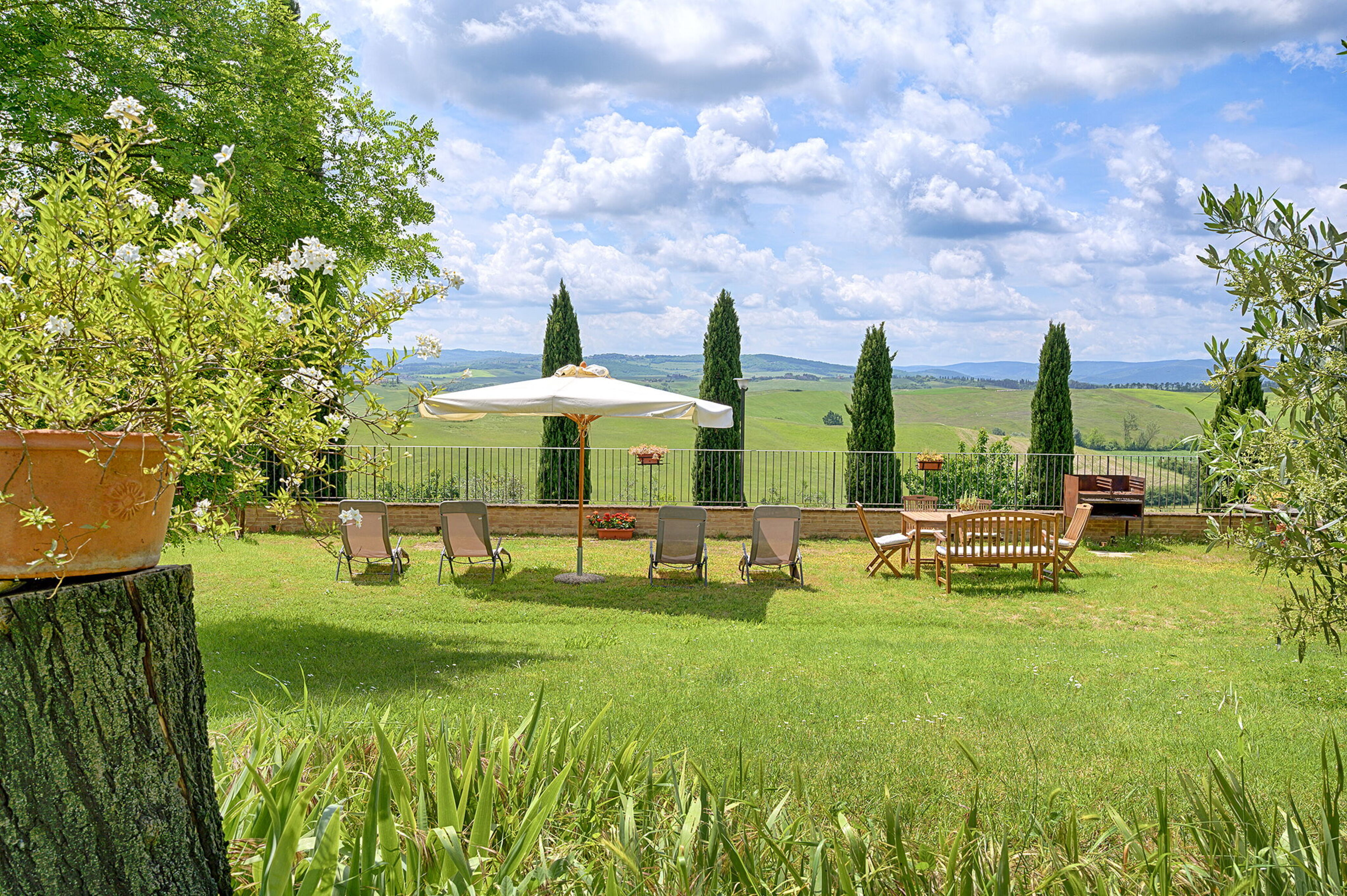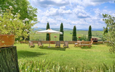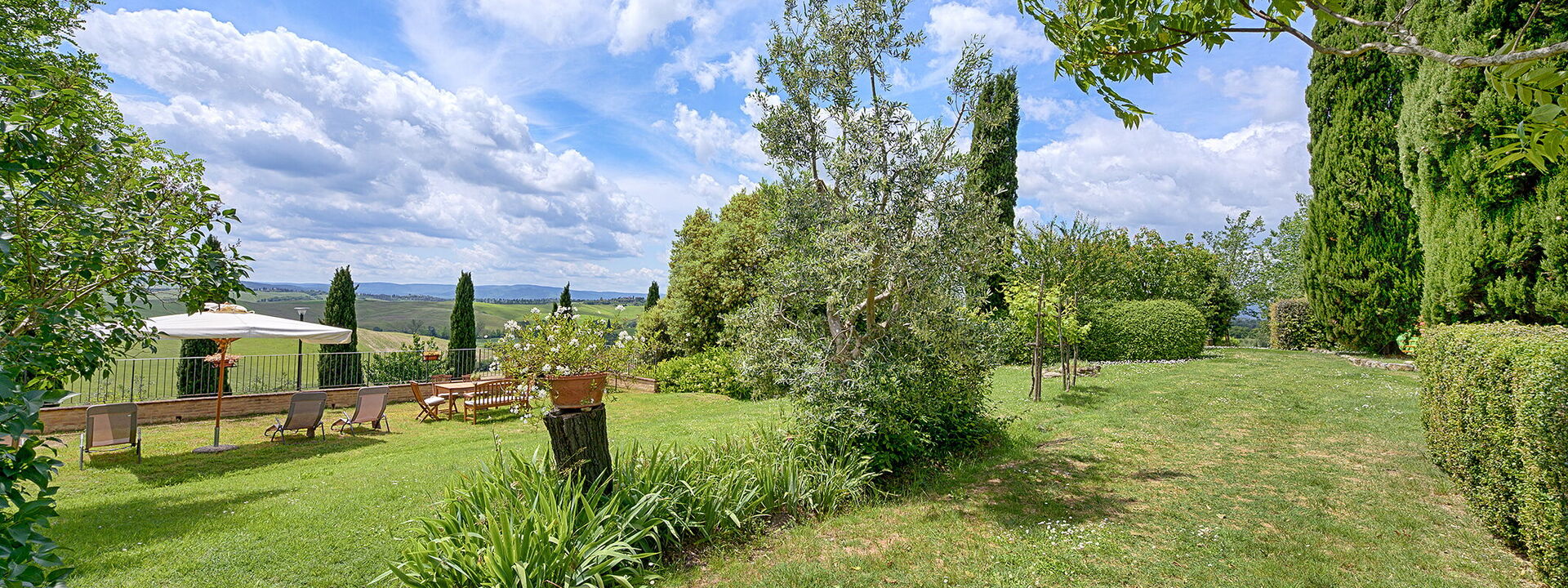Situata in un piccolo borgo rurale ma totalmente indipendente, la villa offre privacy, ampi spazi aperti e l'atmosfera rigenerante della campagna toscana. Circondata da un giardino privato, la proprietà vanta una vista panoramica sulle colline e i vigneti circostanti: quel paesaggio iconico che rende la Toscana indimenticabile, specialmente all'ora del tramonto.