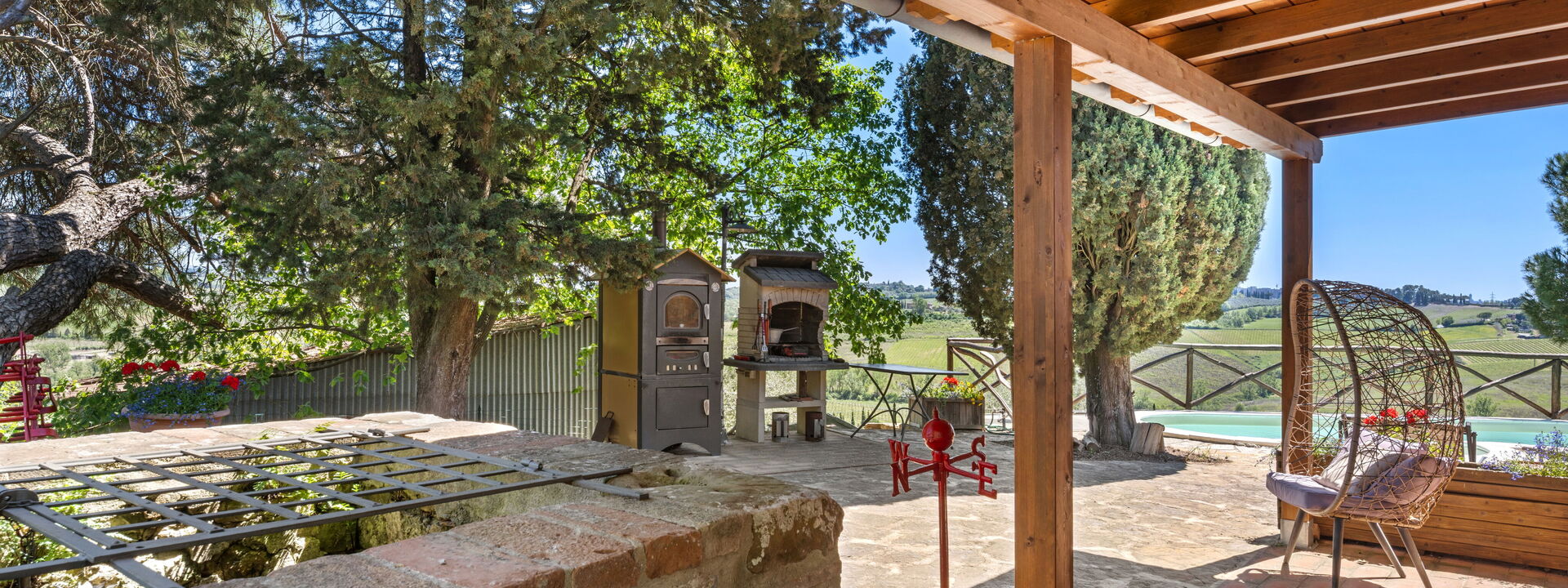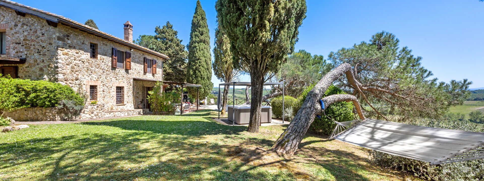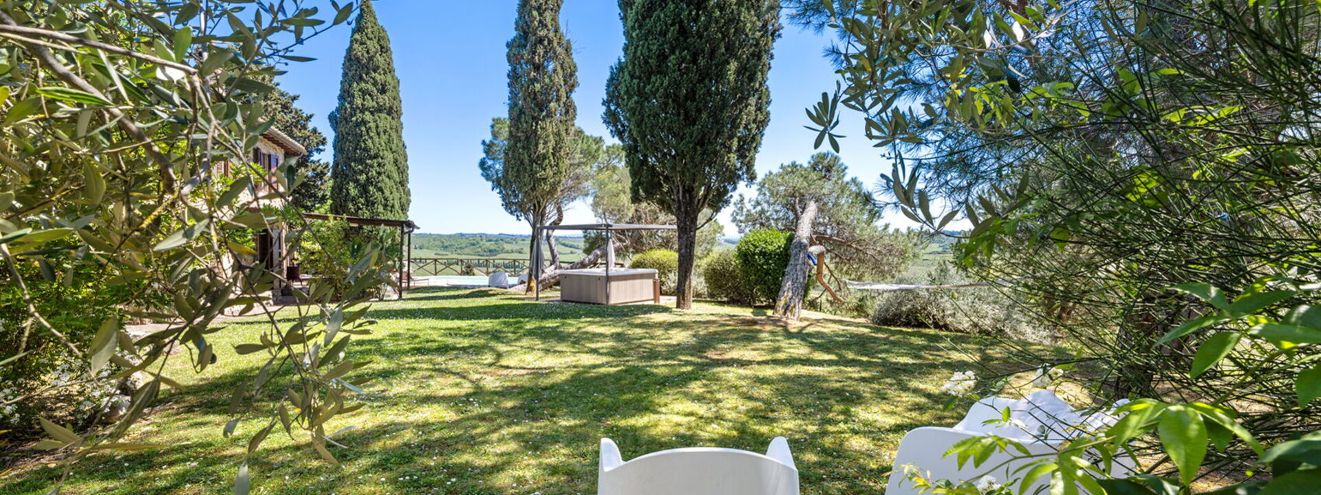 La casa è immersa in un giardino privato a uso esclusivo degli ospiti, che crea un ambiente intimo e riservato per rilassarsi e godersi la quiete rurale. La vita all'aria aperta è il fulcro dell'esperienza: zone ombreggiate sotto alberi secolari, comodi spazi relax e una vista aperta sulla valle offrono la cornice perfetta per i lunghi pomeriggi toscani.