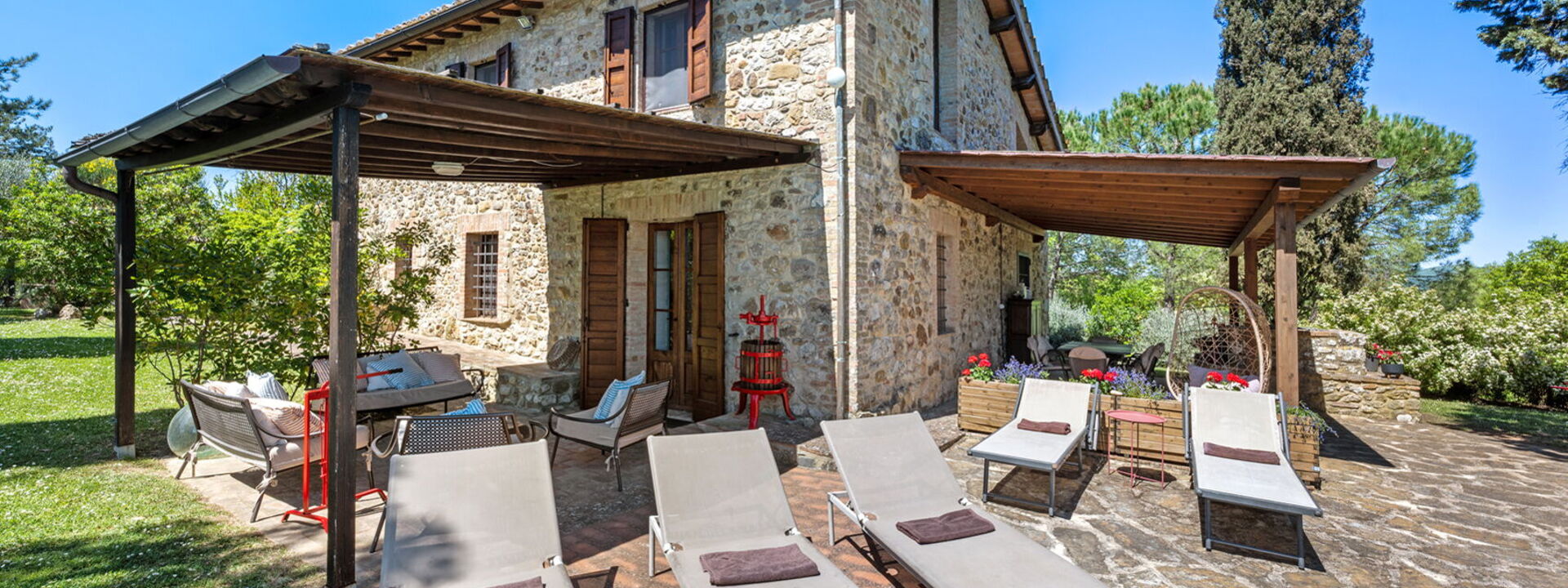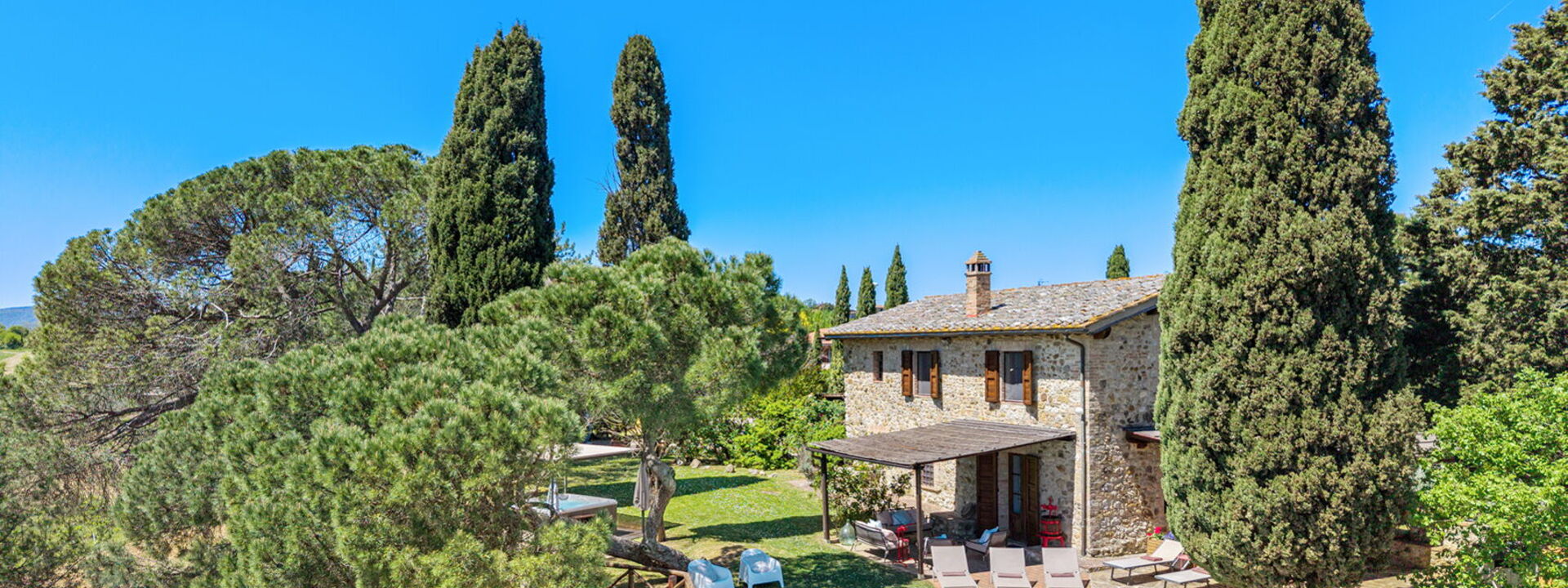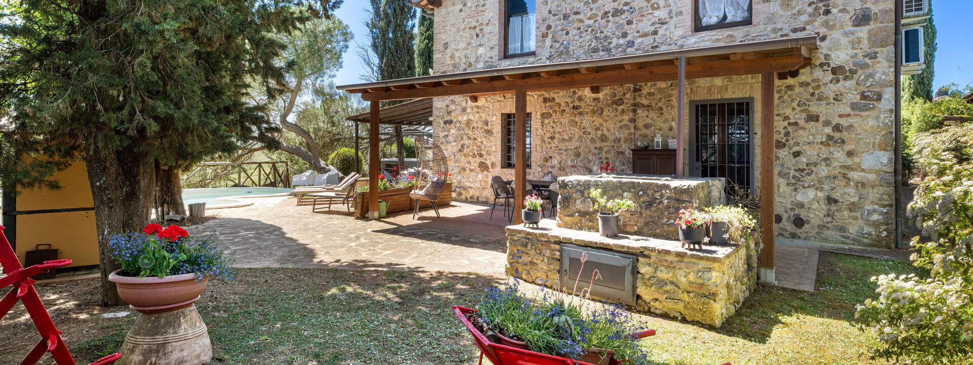 La casa è immersa in un giardino privato a uso esclusivo degli ospiti, che crea un ambiente intimo e riservato per rilassarsi e godersi la quiete rurale. La vita all'aria aperta è il fulcro dell'esperienza: zone ombreggiate sotto alberi secolari, comodi spazi relax e una vista aperta sulla valle offrono la cornice perfetta per i lunghi pomeriggi toscani.