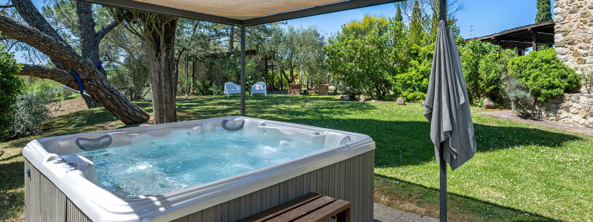 La vasca idromassaggio esterna è disponibile dal 1° aprile al 30 ottobre; su richiesta, può essere aperta anche nei mesi invernali (con un supplemento) di 200,00 euro).