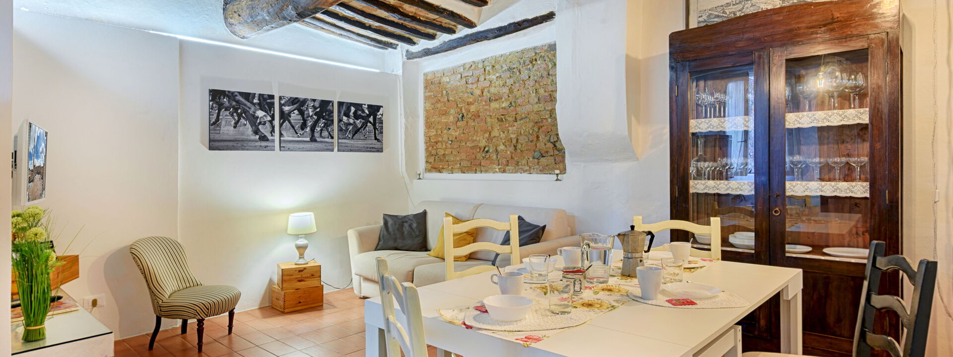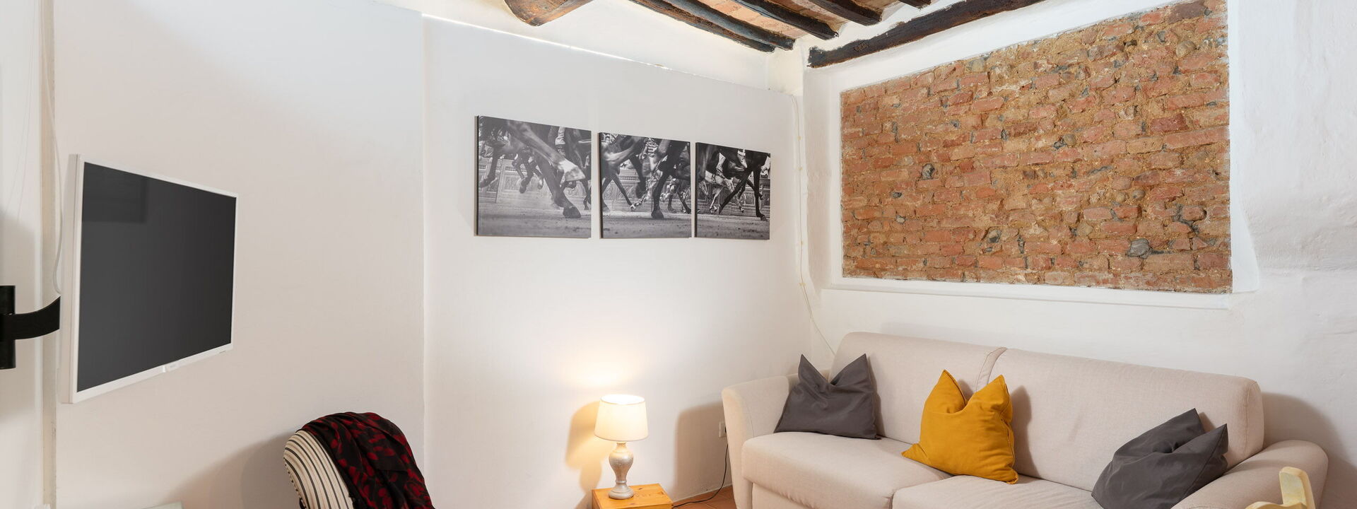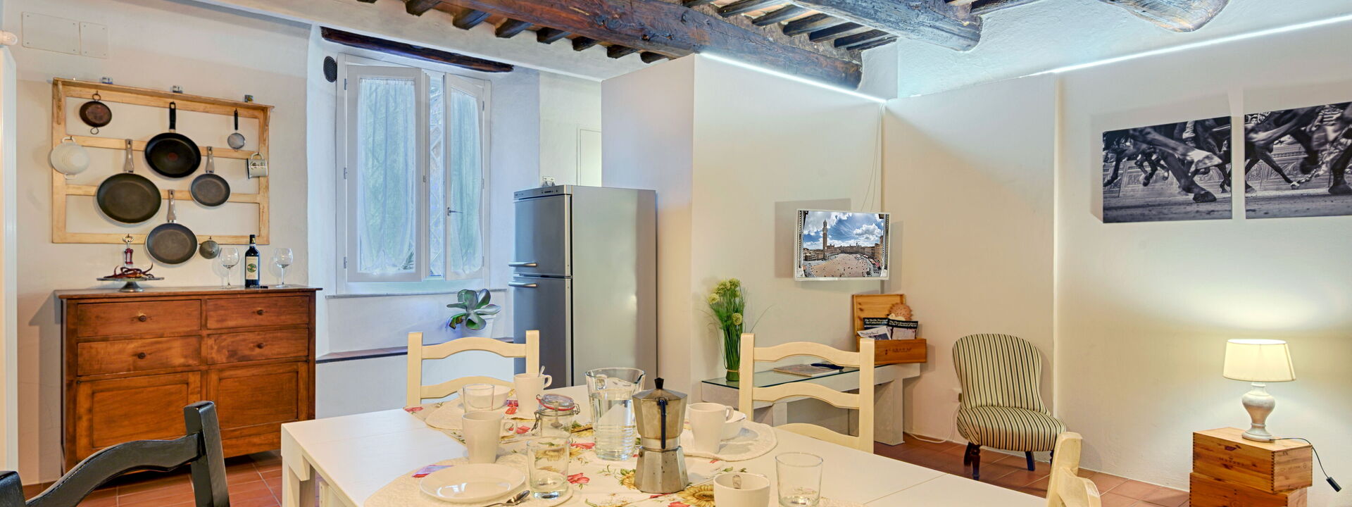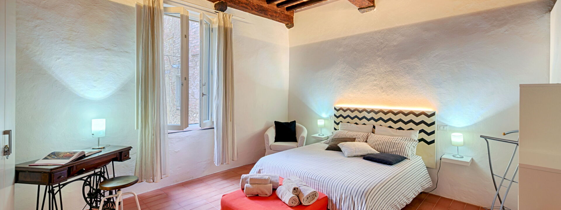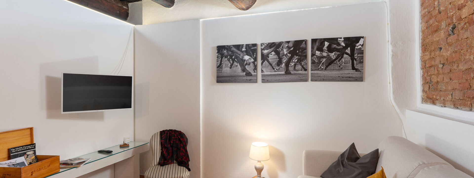 travi del 600 coronano il tetto delle camere e danno all'ambiente un grande fascino toscano.