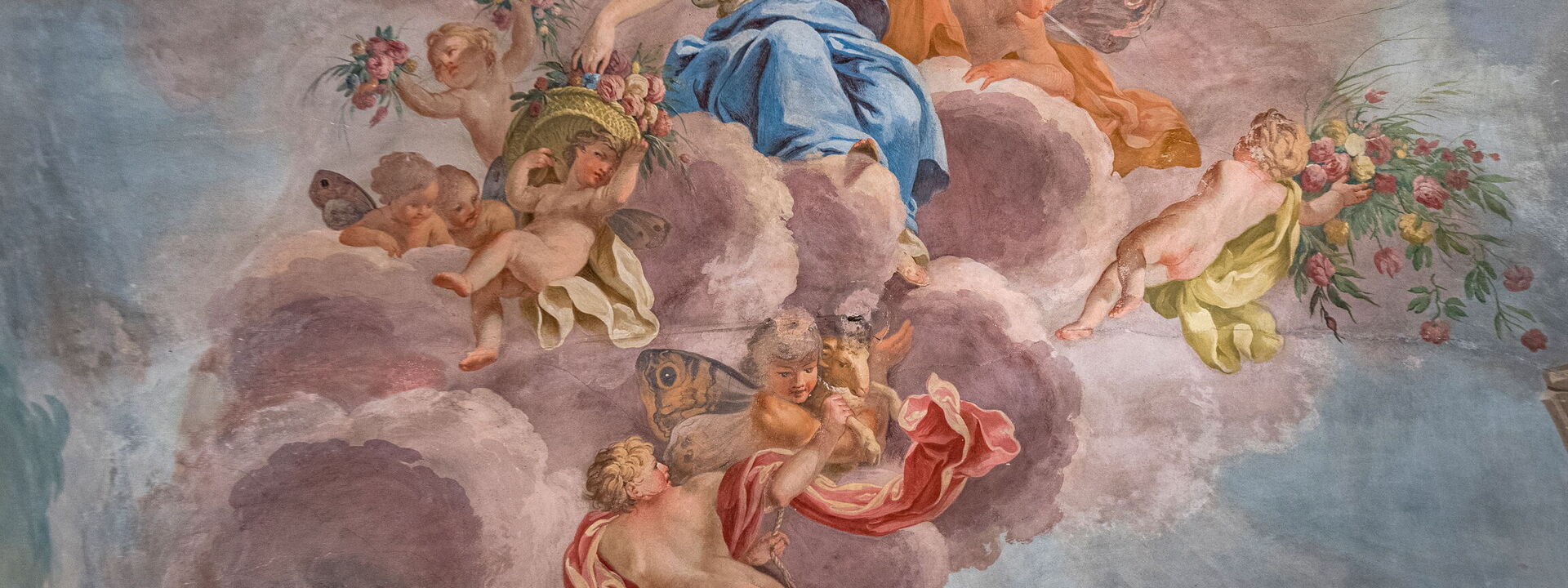 Frescoed with the "music" allegory of the 1800, it preserves the wooden walkway for the musicians who enlivened the evenings at the Palazzo.